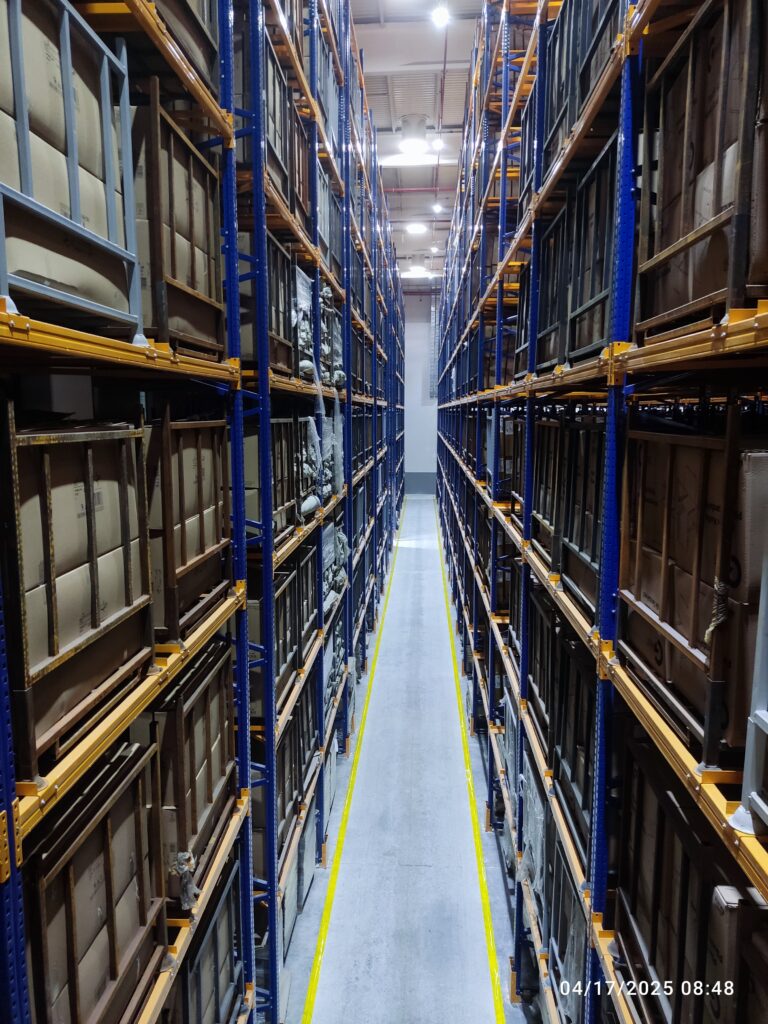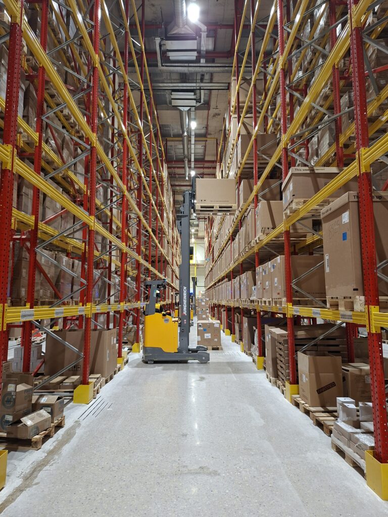 The company delivers solutions aligned with international flatness and levelness standards, including defined movement systems for VNA (Very Narrow Aisle) operations.