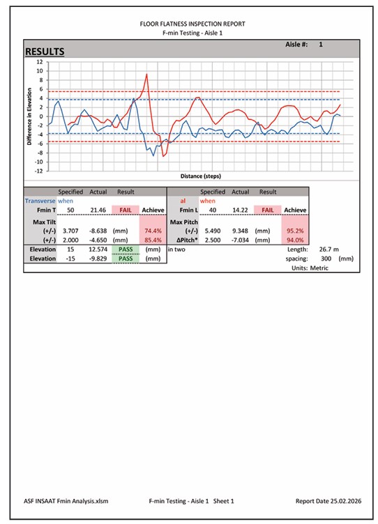 Accurate reporting ensures that floor performance is clearly defined, verified, and aligned with operational and equipment requirements. Every result is directly linked to recognized flatness criteria, forming the basis for reliable compliance and effective decision-making.